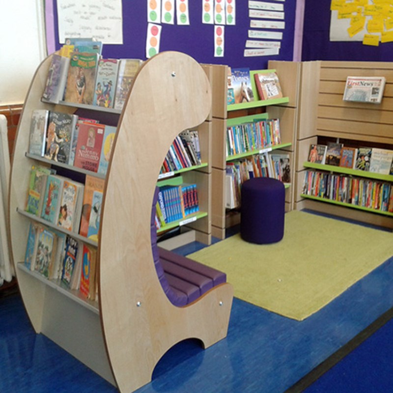 Children will love the unusual shape and the sense of secret space. The books are displayed on both front and back so can be seen from all angles. It’s a lot more fun choosing from the Reading Nook than choosing from standard bookshelves – and once you’ve chosen you can curl up by yourself or with a friend to read in peace on the comfortable seat.