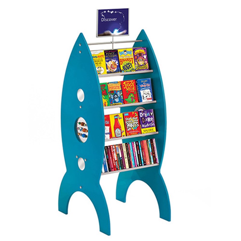 The dramatic shape of our Rocket Pod appeals to a wide age range of children, especially boys. Choose books with covers to attract boys and you’ll find they make a beeline for your display, in preference to browsing the shelves where there are just too many books to choose from. You can dress the unit to appeal to younger or older children at different times of day. Take a note of who comes in when and try targeting the top two shelves towards that group. You can make someone feel the library is just for them with very little effort.