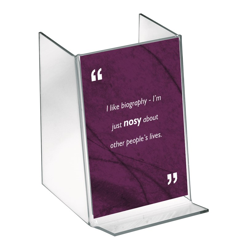 This cleverly designed easel highlights one book at the front of the shelf while also acting as a shelf-tidy to hold books straight on either side. You can move it from shelf to shelf to create different effects in seconds. It will bring a professional touch to any display. Try using two easels on the same shelf to really catch attention.