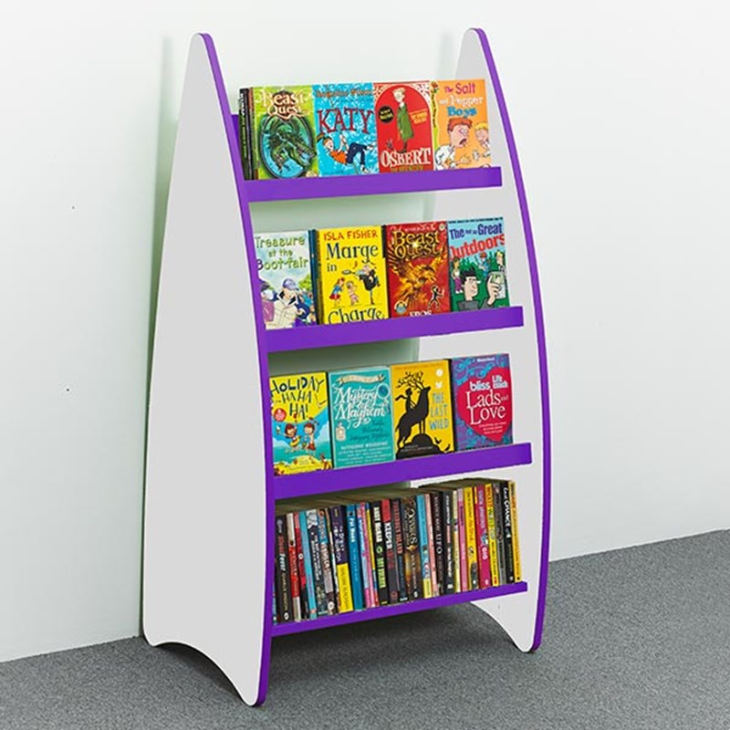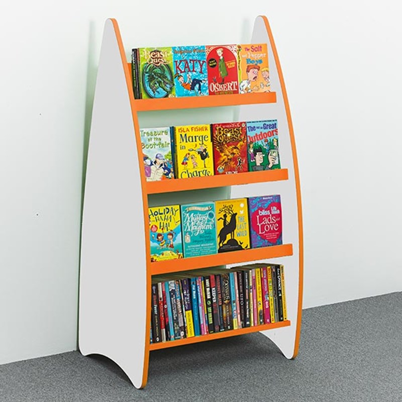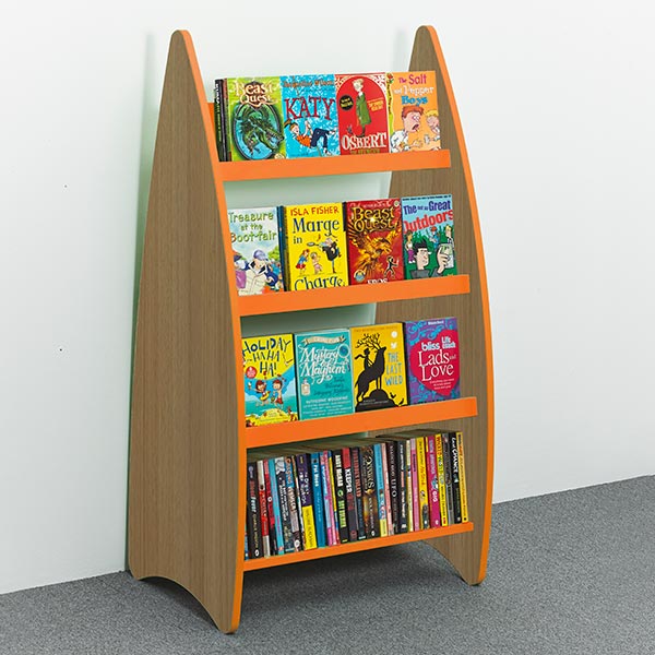 The Tall Fiction Bookcase features 4 shelves on one side which are just the right size for paperbacks. The three upper shelves provide face-out display with a lip to prevent books falling off and the lower shelf is designed for spine-out display and makes it easy to top-up the face-out shelves once the books have been taken by the children.