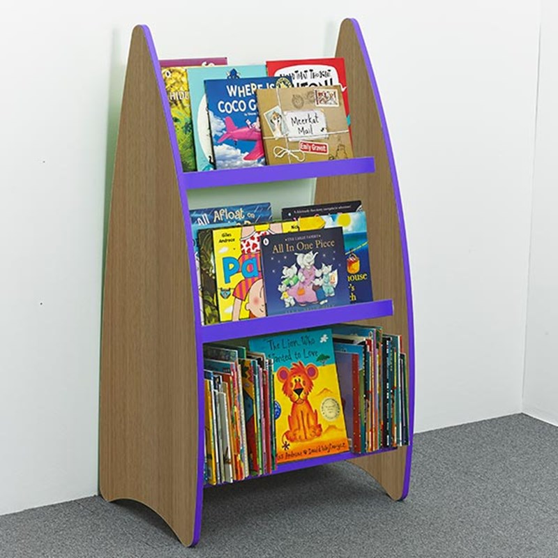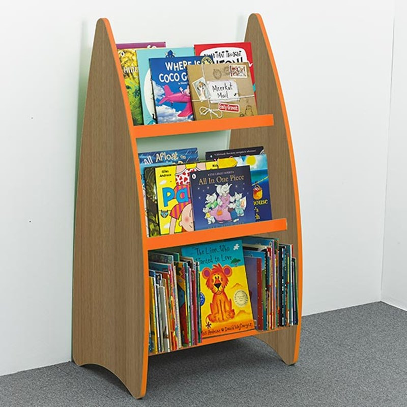The Tall Non-fiction Bookcase features 3 shelves on one side which are large enough to accommodate the larger format of non-fiction books or picturebooks. The two upper shelves are designed for face-out display and have a lip which prevents the books from falling off. The lower shelf is designed for spine-out display and makes it easy to top-up the face-out shelves once the books have been taken by the children.